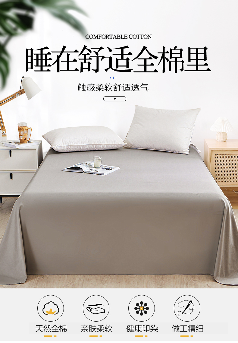 首页> 家居/ 家具/ 家装> 家纺> 床单> 南极人NanJiren 全棉床单单件 纯色简约新疆棉纯棉单双人床床单